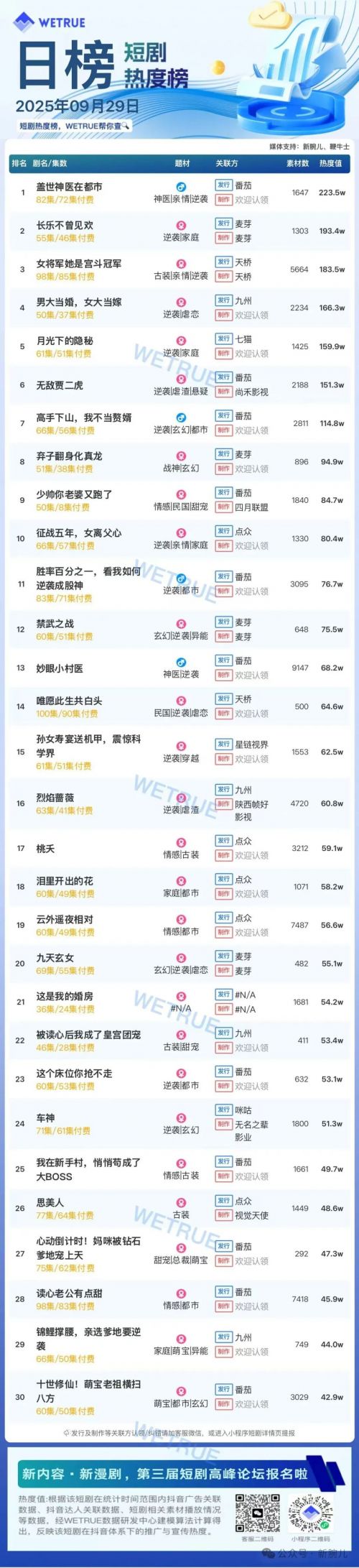 9月29日付费短剧大盘4501万:《盖世神医在都市》连续两天第一 2025-09-30 11:05 新腕儿 今天发布的是昨天(9月29日)短剧付费大盘日榜,整体大盘热度值为4501万。 分享到 精彩推荐 金塔:戈壁滩铺就“绿电蓝海” 金昌市首批“营商环境体验官”聘任上 敦煌葡萄今年首次自主出口海外 临夏花椒实现销售收入1.2亿元 甘肃抗日战争革命文献展在兰州展出 银河到底有多宽?(把自然讲给你听) 今年华北雨季为何偏长 敦煌第九届葡萄文化旅游节即将举办 天津采访团定格皋兰新图景 多部爱情片扎堆上映 今年七夕大银幕 兰州多领域攻坚书 文明新风拂七里 万人开跑 半程马 兰州市积极应对强 甘肃省发布地质灾 “马背法庭”并未